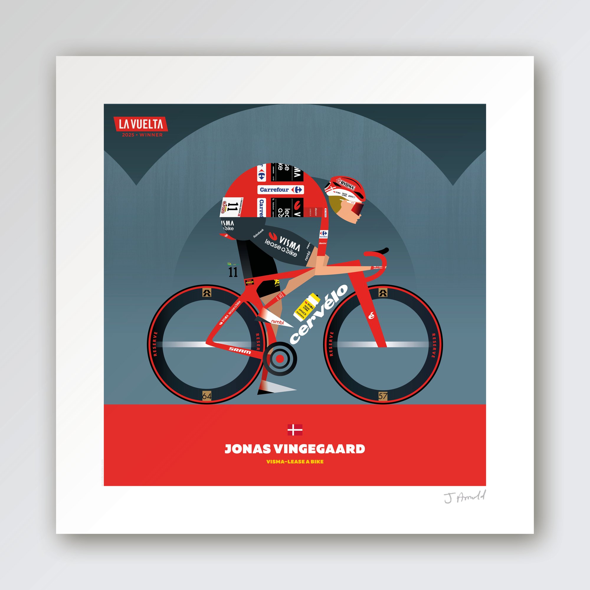 Celebrate Jonas Vingegaard's amazing win of the Vuelta 25 with this limited edition print.